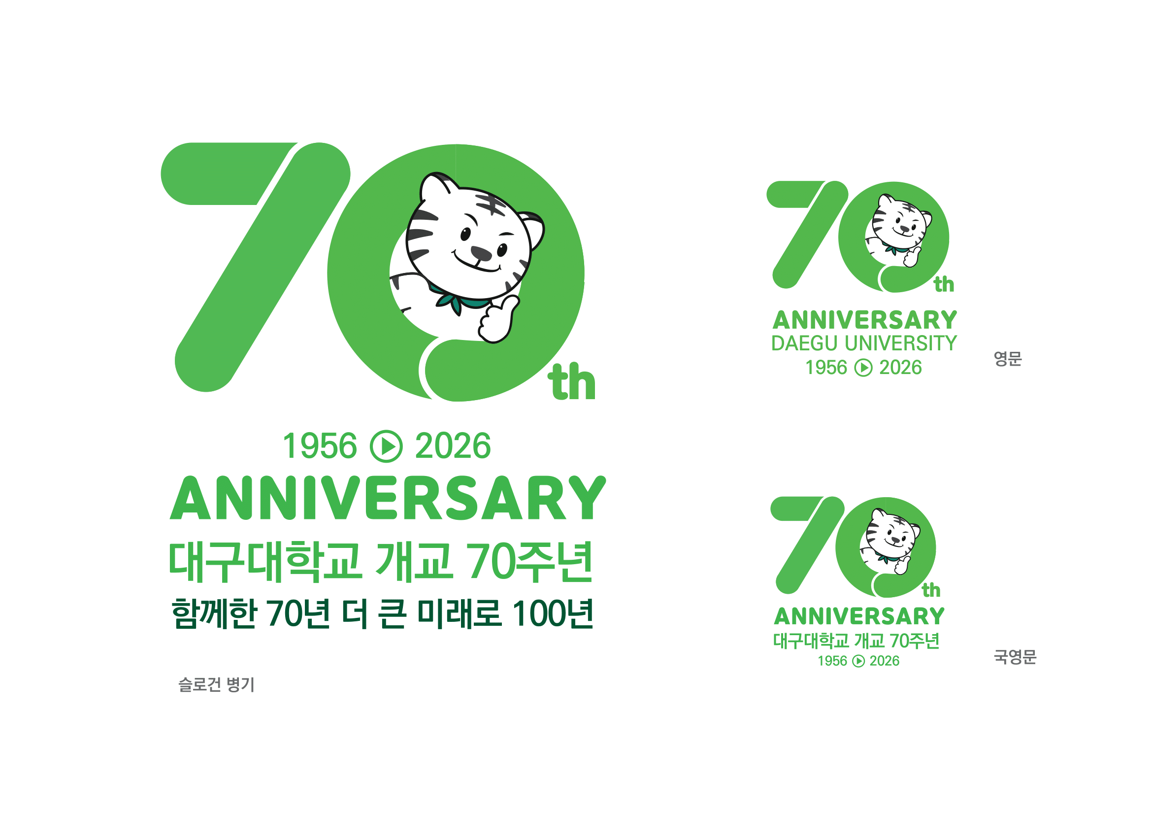 로고타입은 엠블럼과 슬로건 및 텍스트를 결합한 형태로, 대구대학교 70주년의 의미와 비전을 전달합니다.